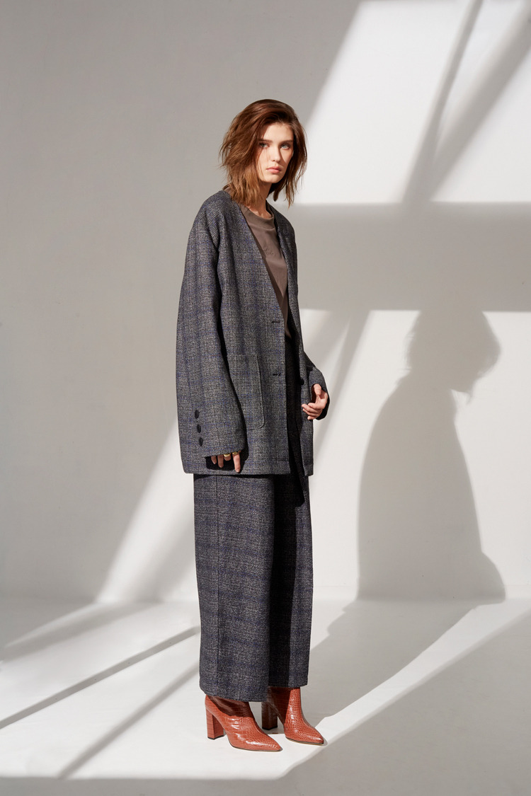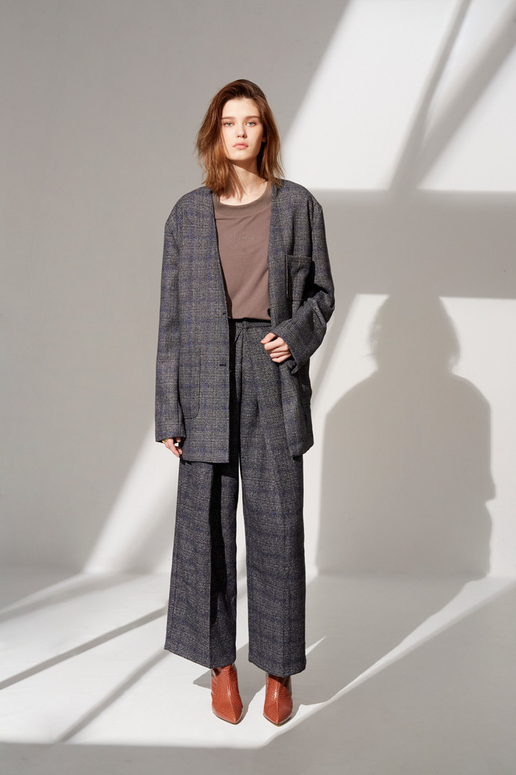 Unisex毛呢织纹摺裤