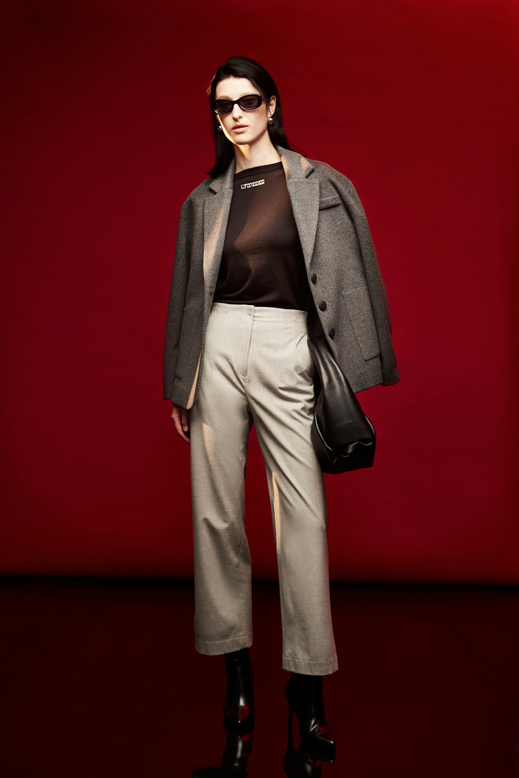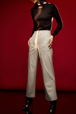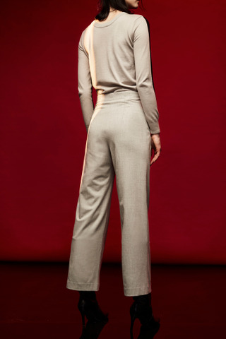 浅灰质感无腰头长裤