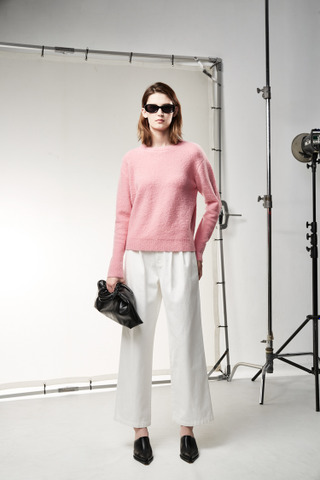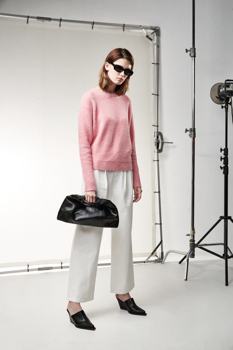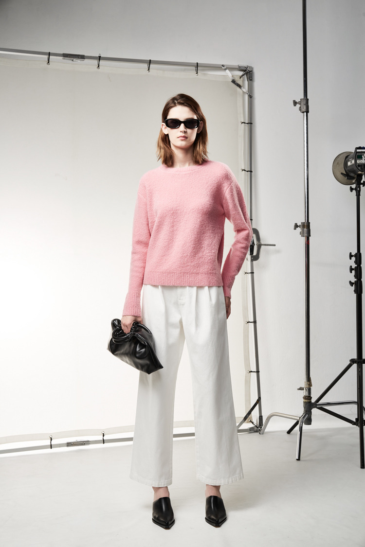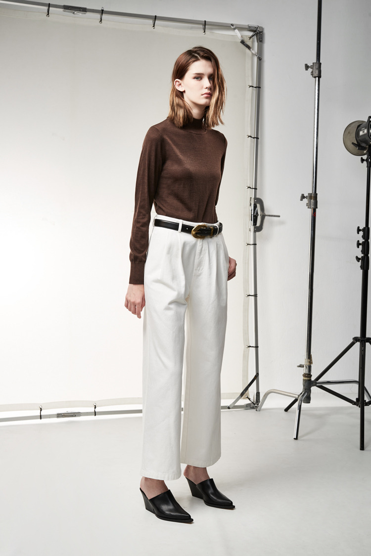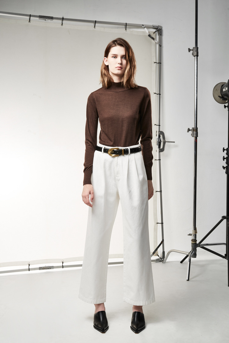 百搭白色打摺设计牛仔裤