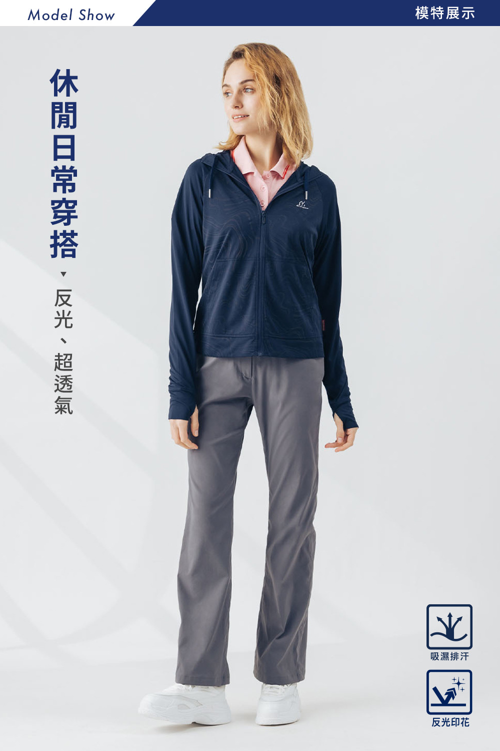 女款超透气反光吸排拇指孔外套
