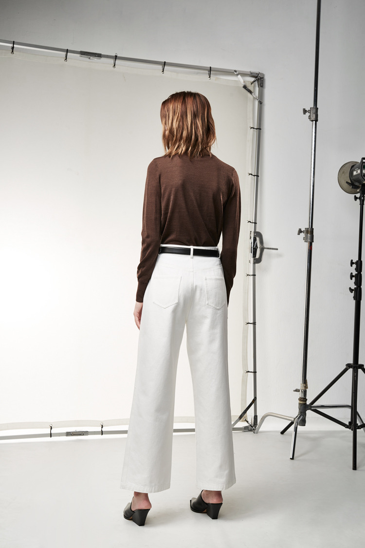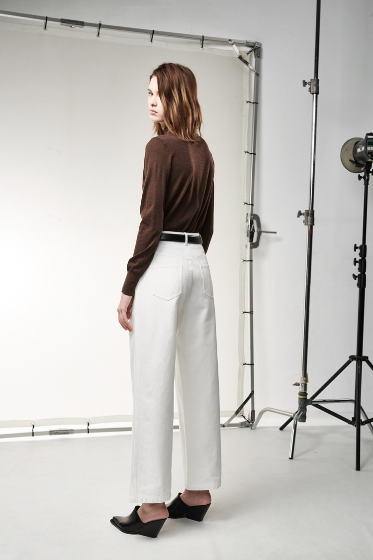 百搭白色打摺设计牛仔裤
