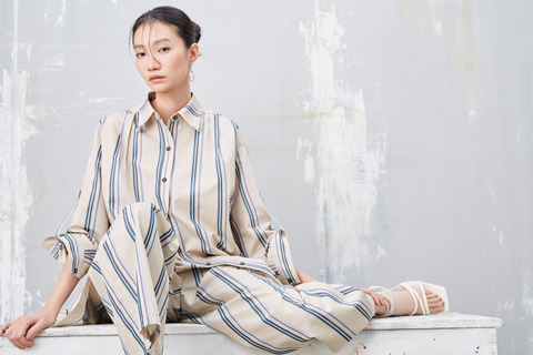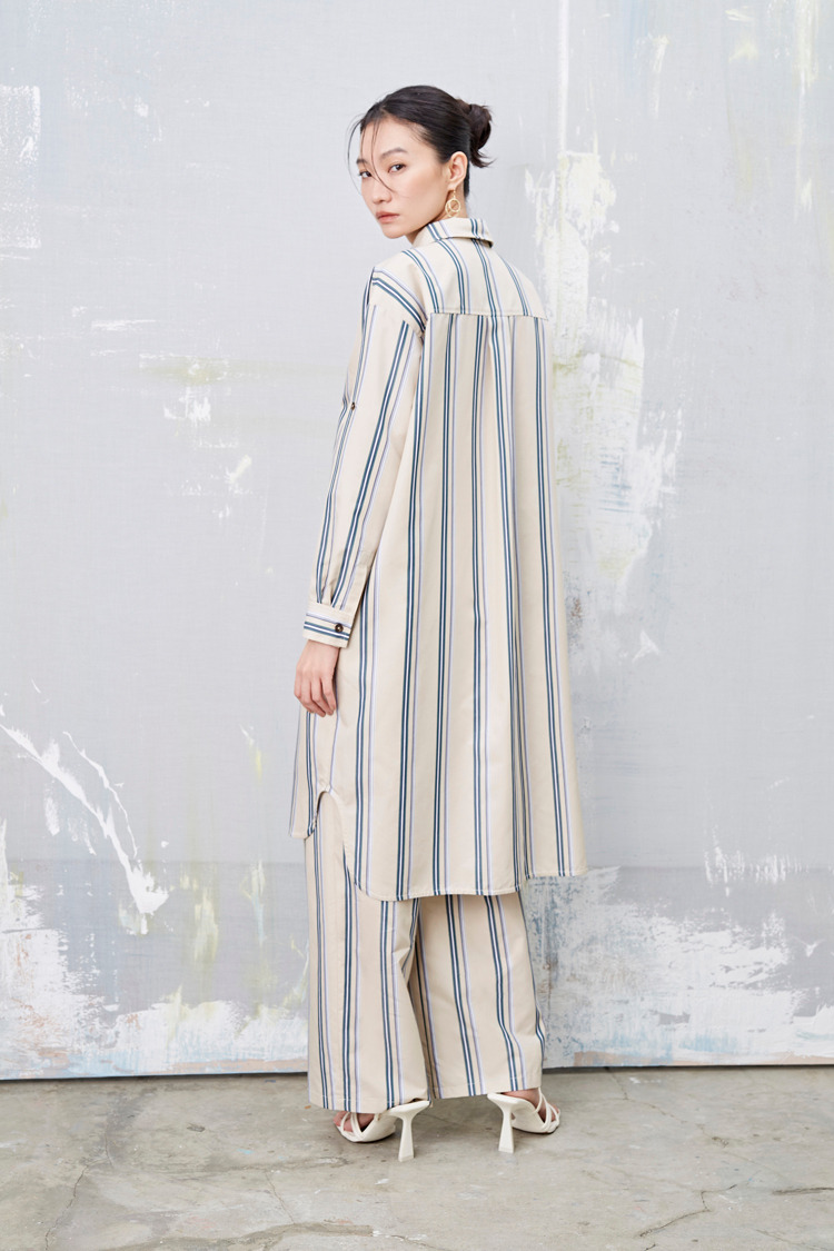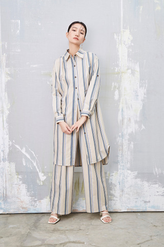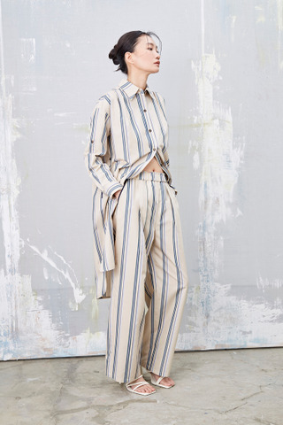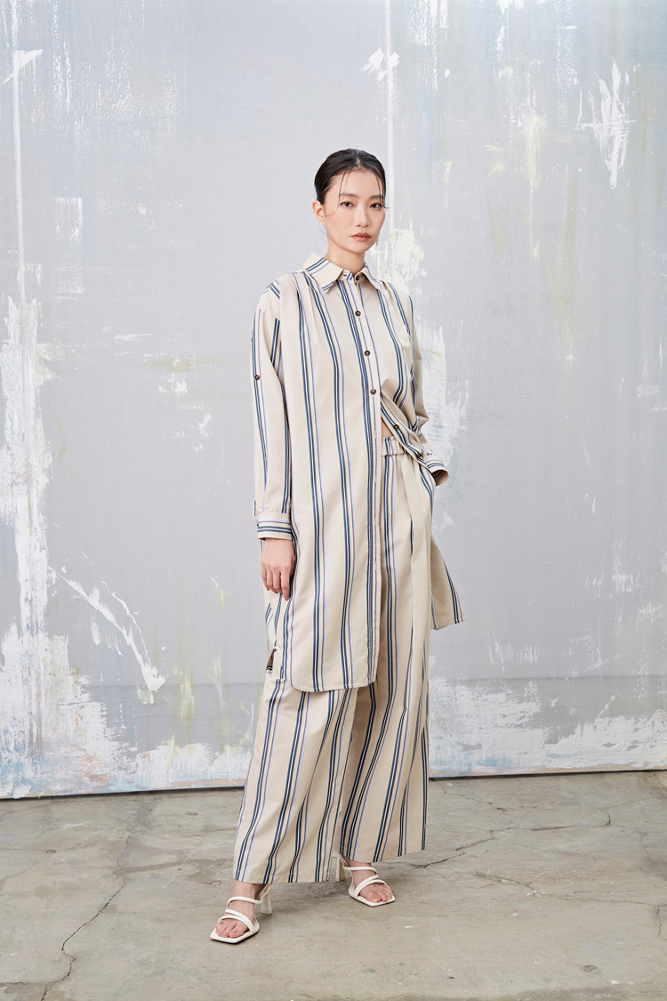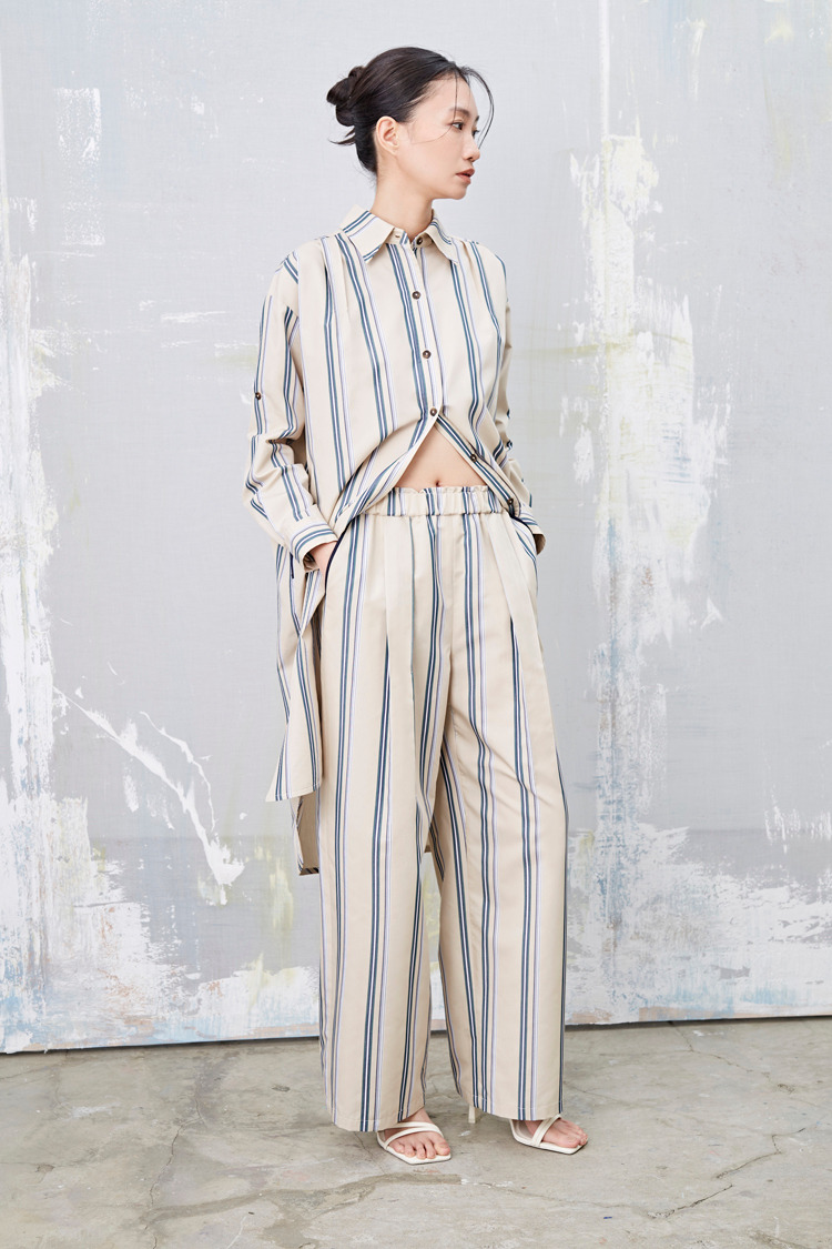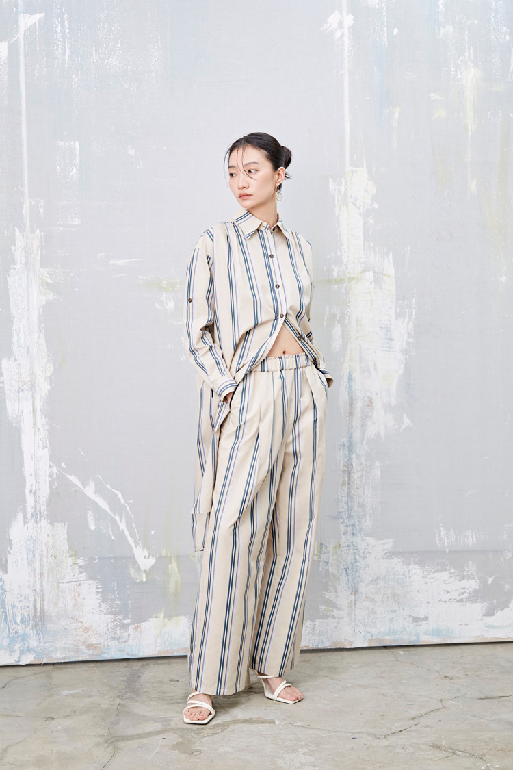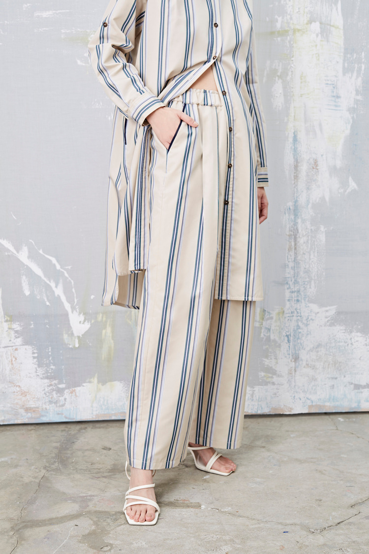 浮世纹 条纹盒摺渡假宽裤