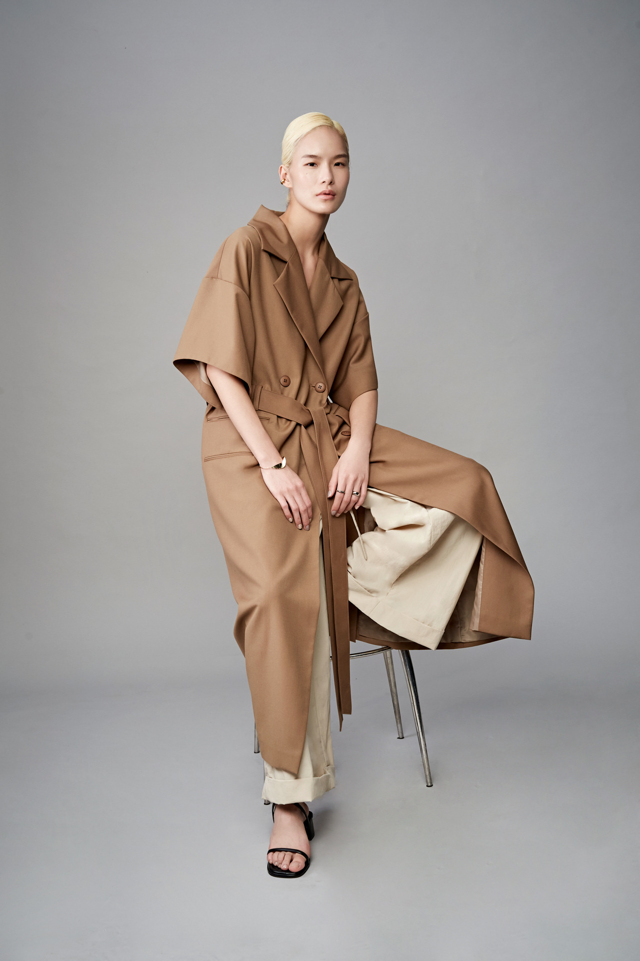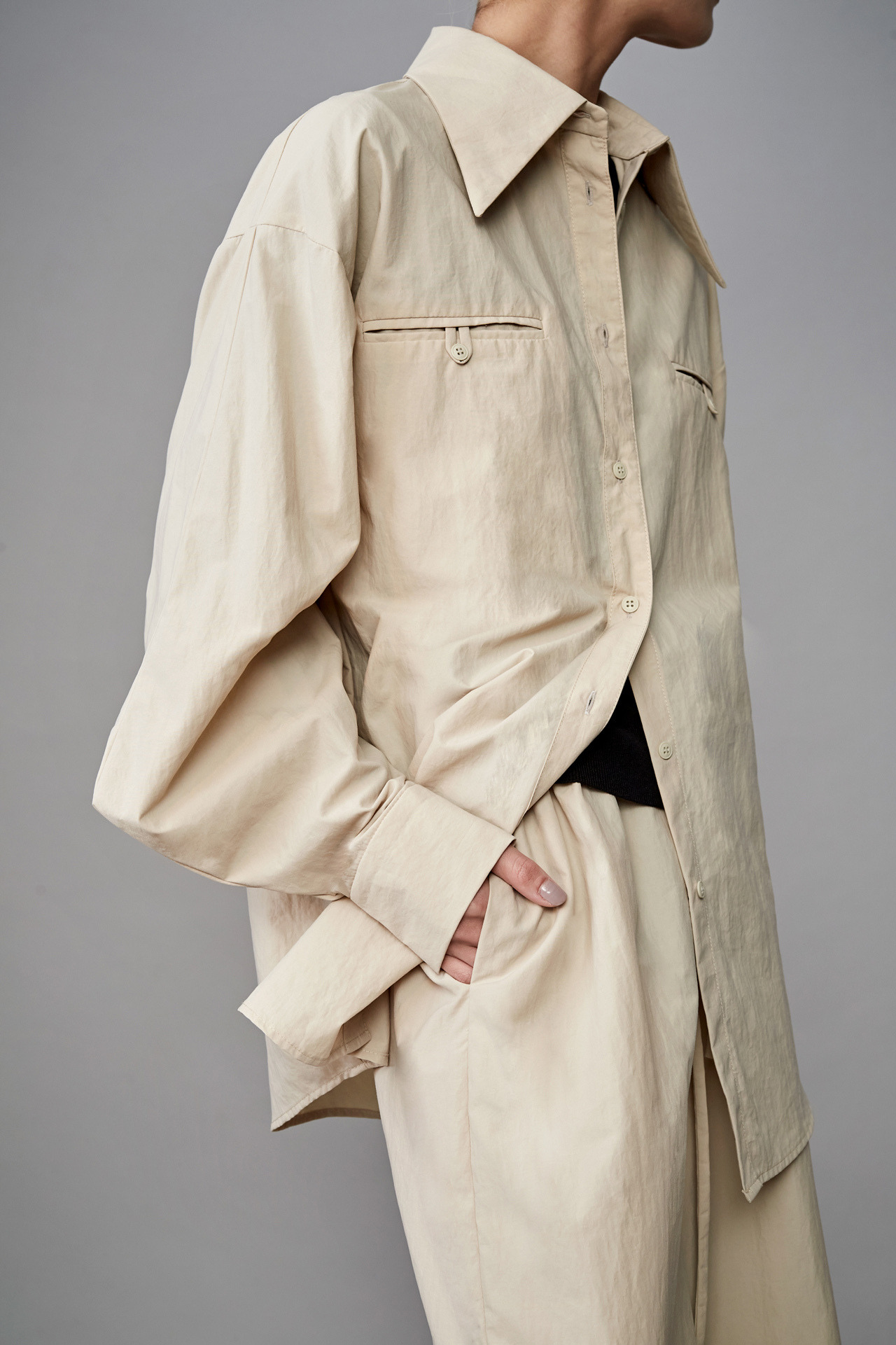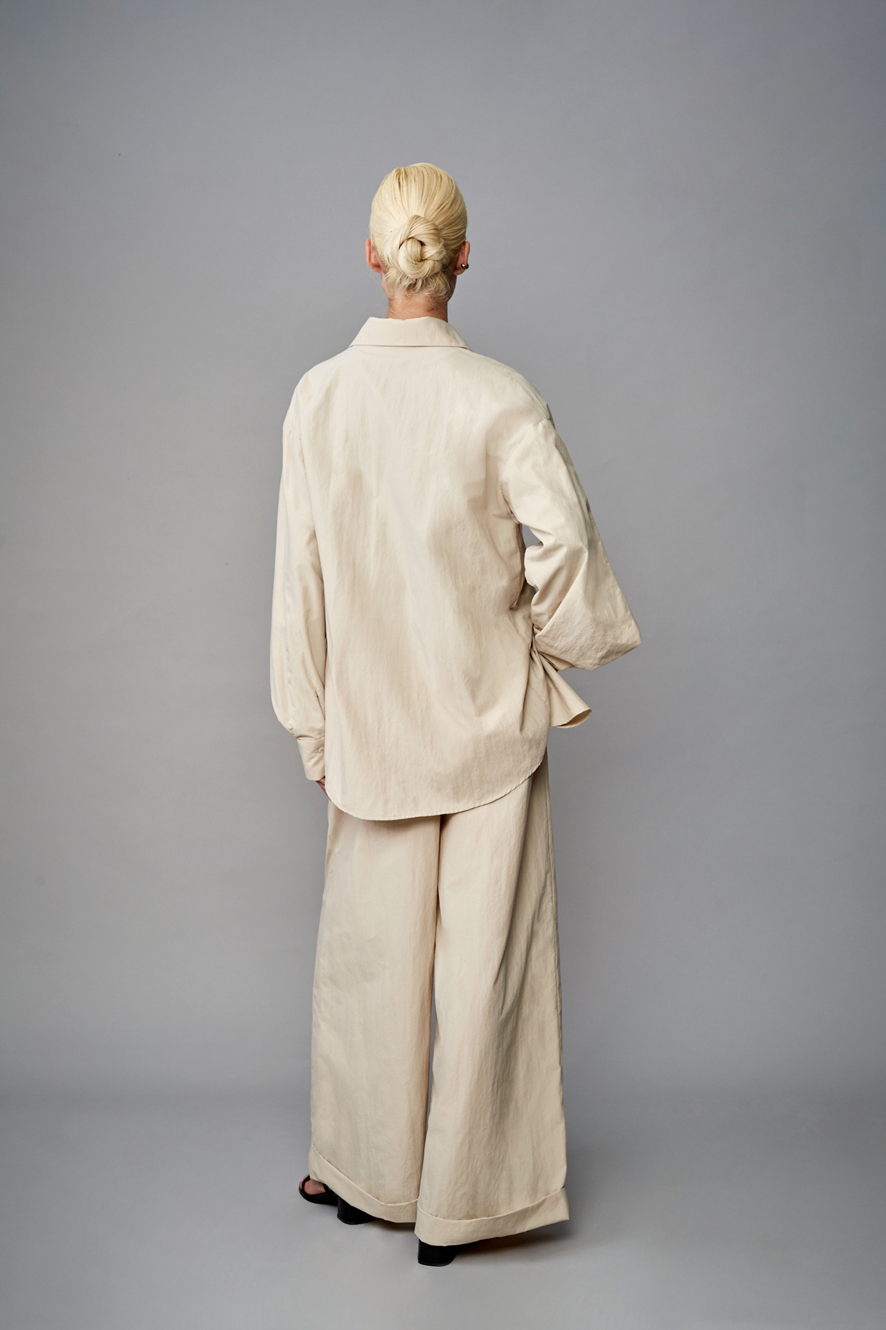 裤口反摺设计长版宽裤