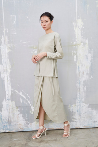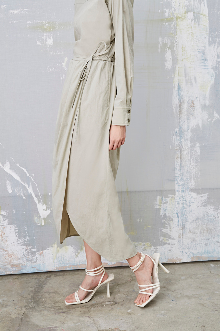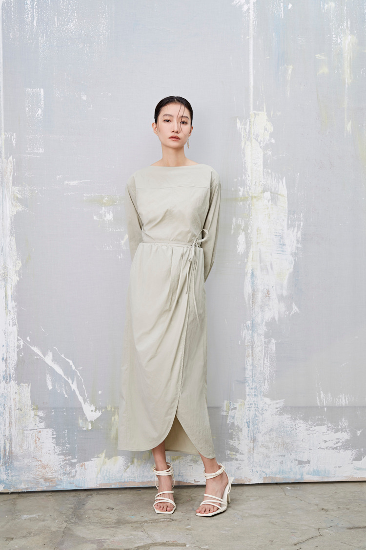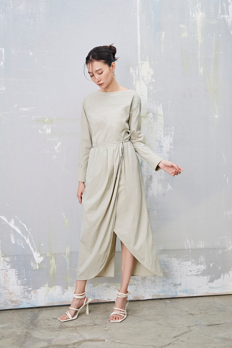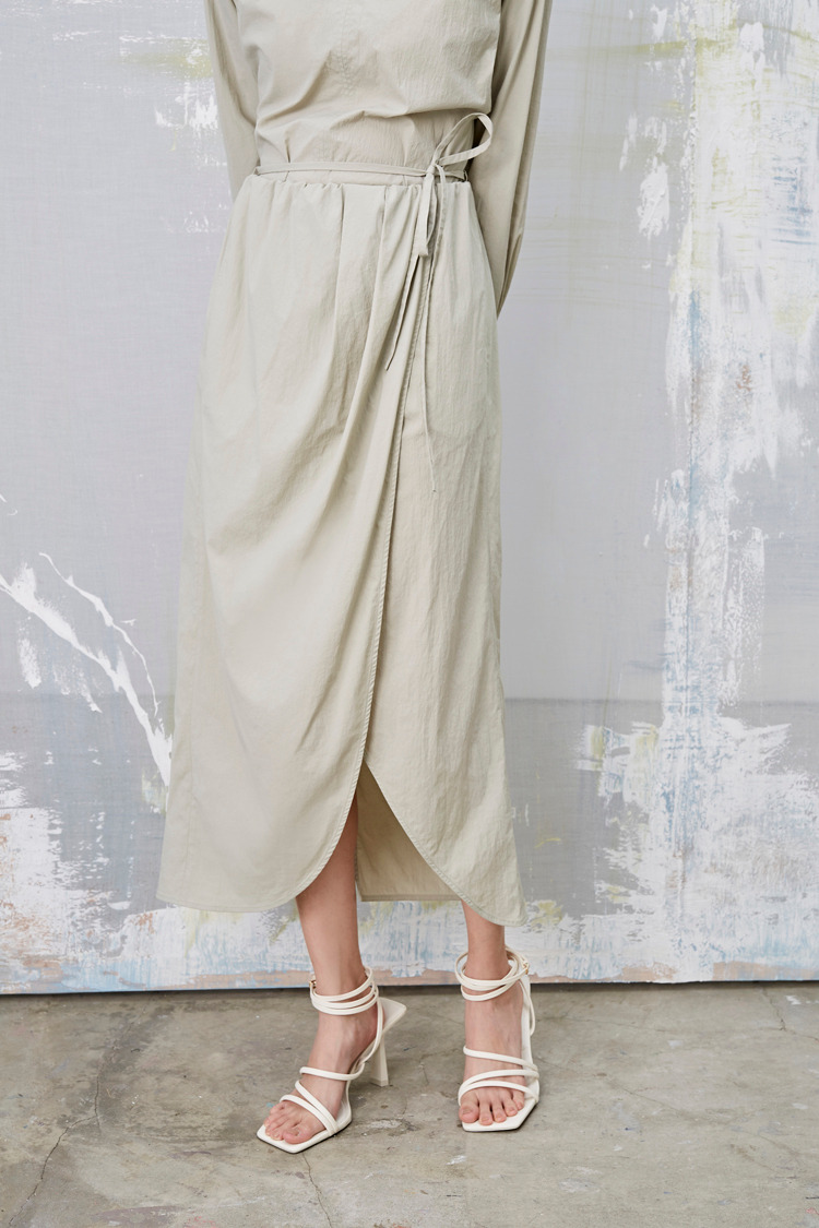 雾春光 打褶绑带中长裙(附绑带)