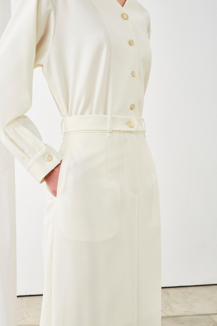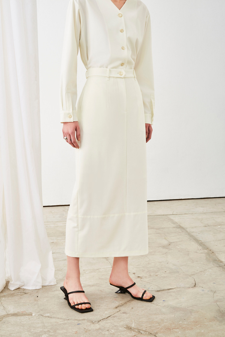 俐落直筒长裙(附腰带)