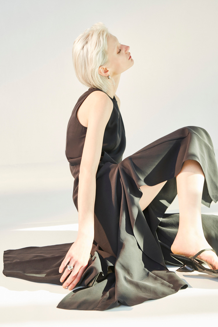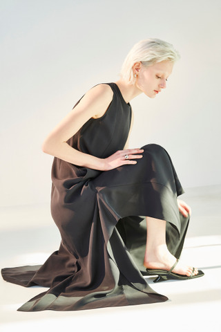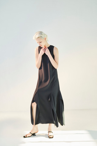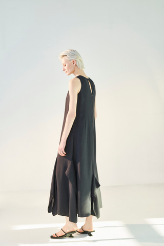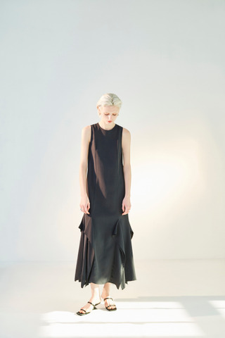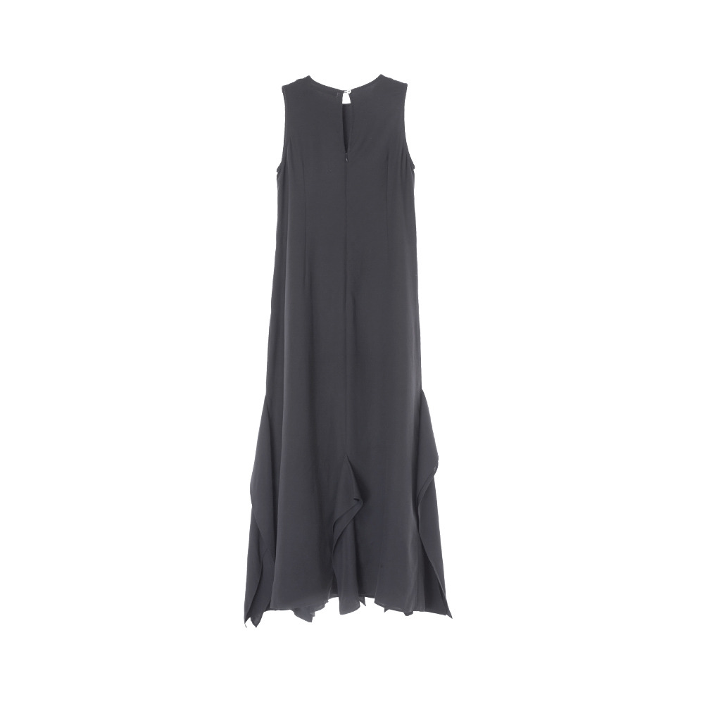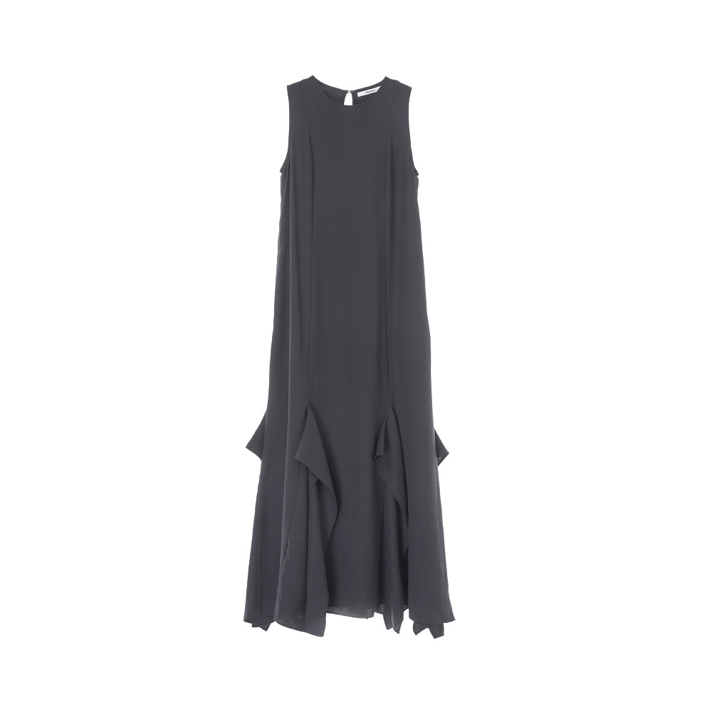 荷叶剪裁设计无袖长洋装