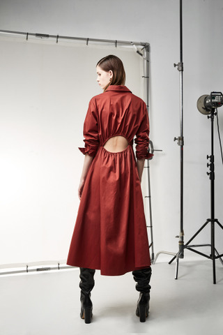 橘红两穿式露腰洋装
