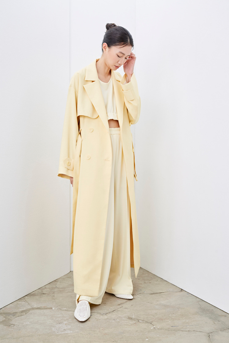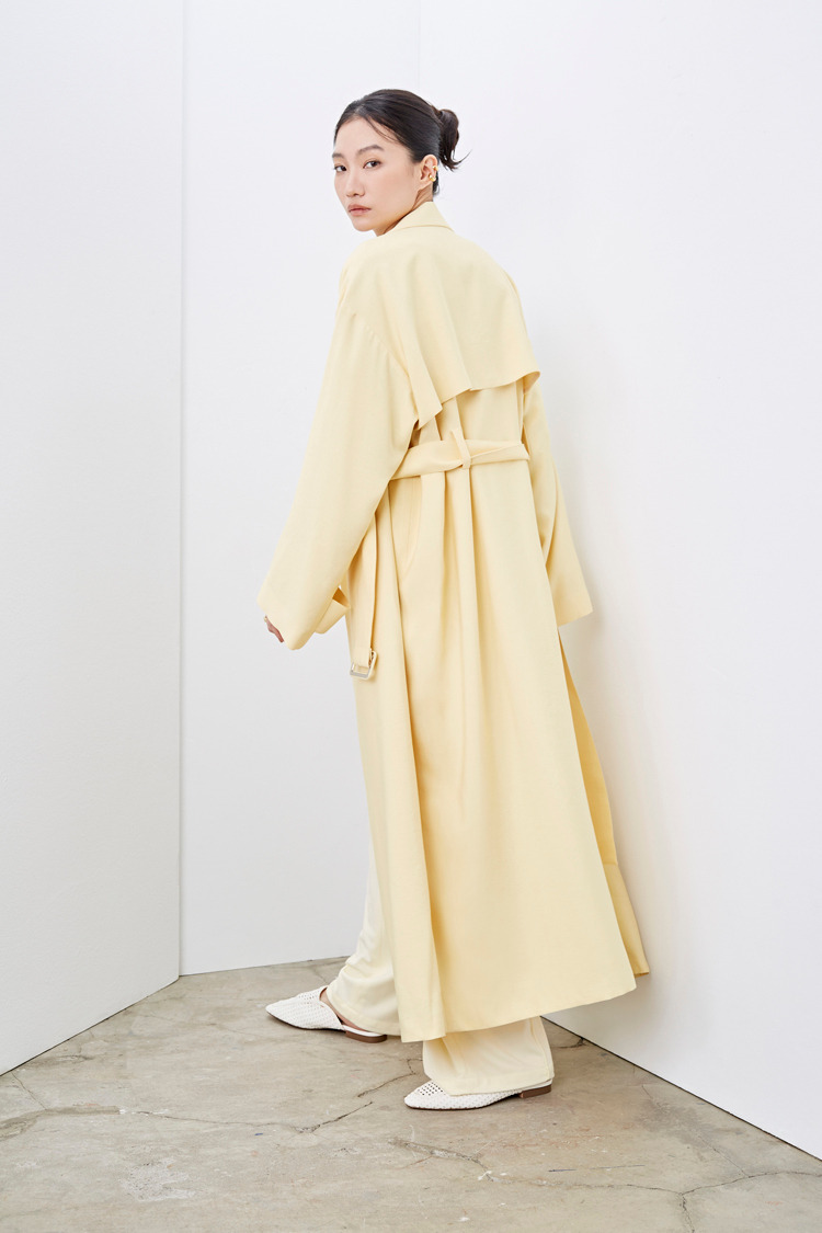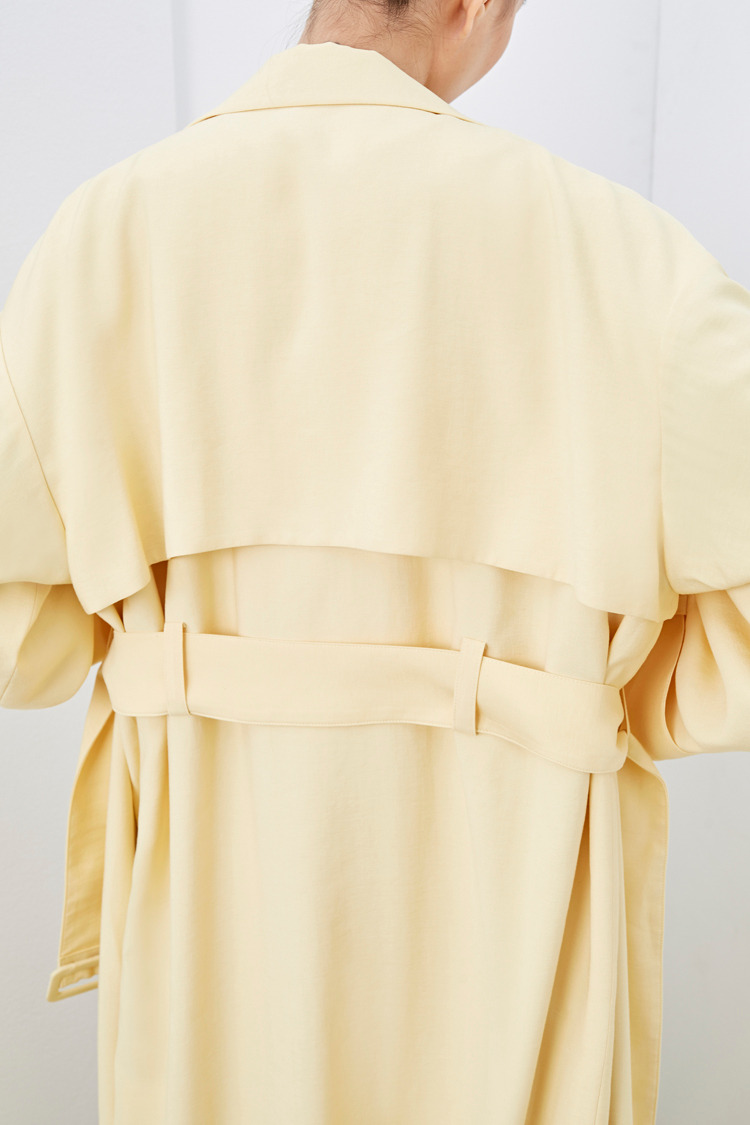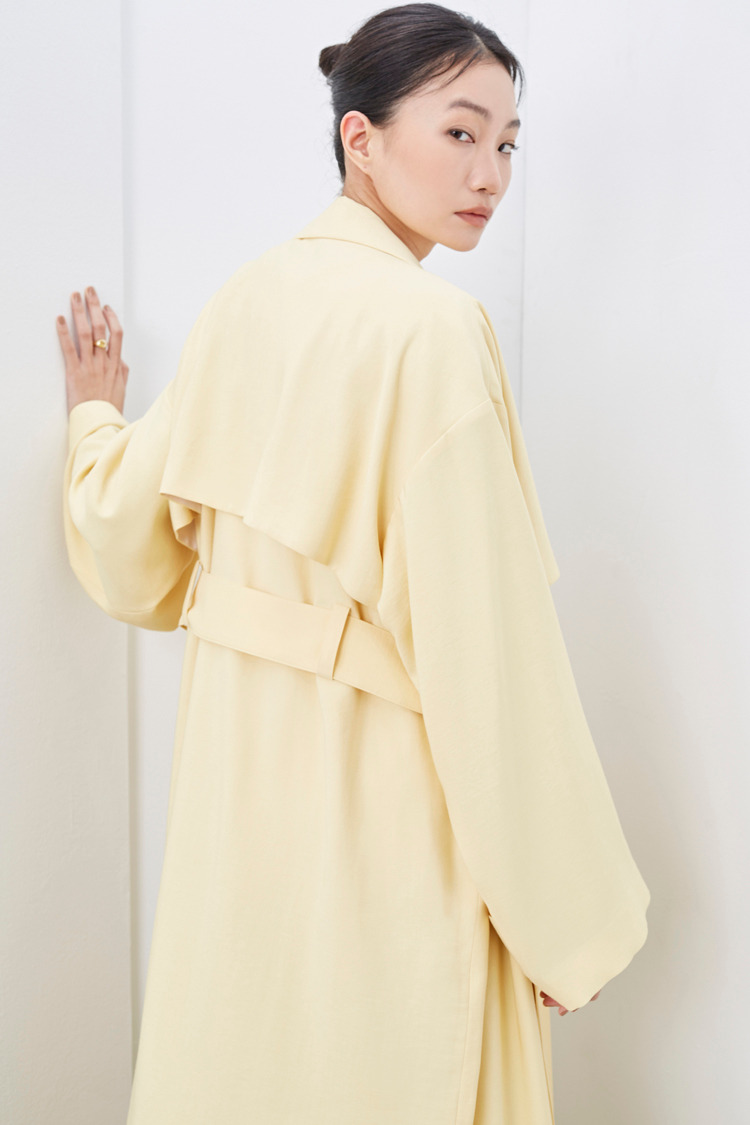 柠檬黄垂坠感长风衣外套(附腰带)