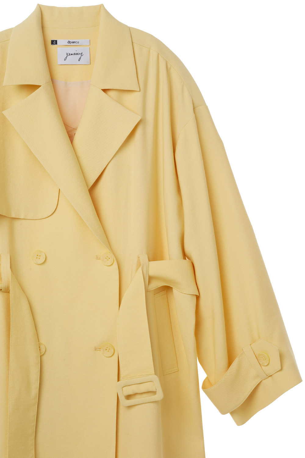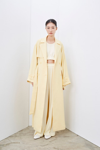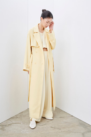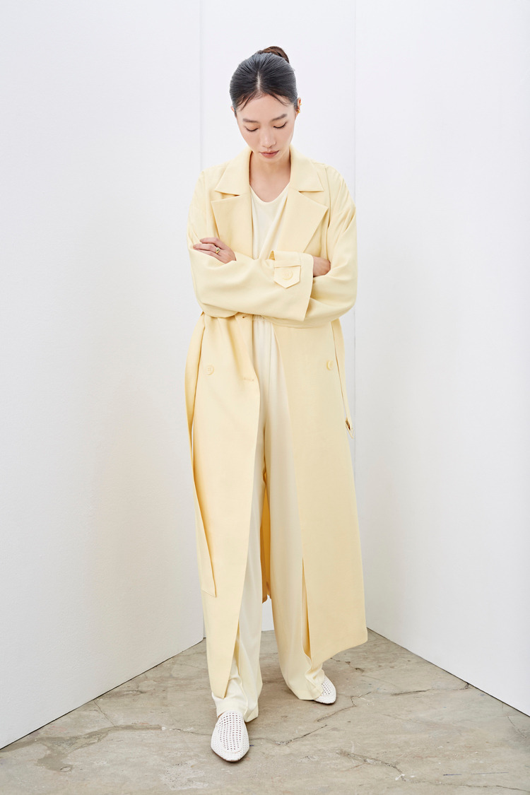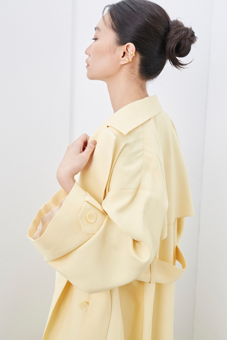 柠檬黄垂坠感长风衣外套(附腰带)
