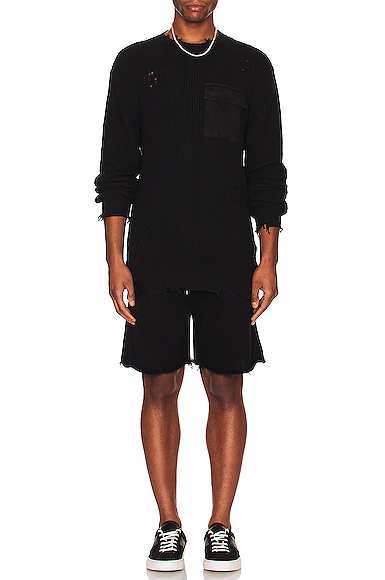 MANTH 黑色毛边短裤