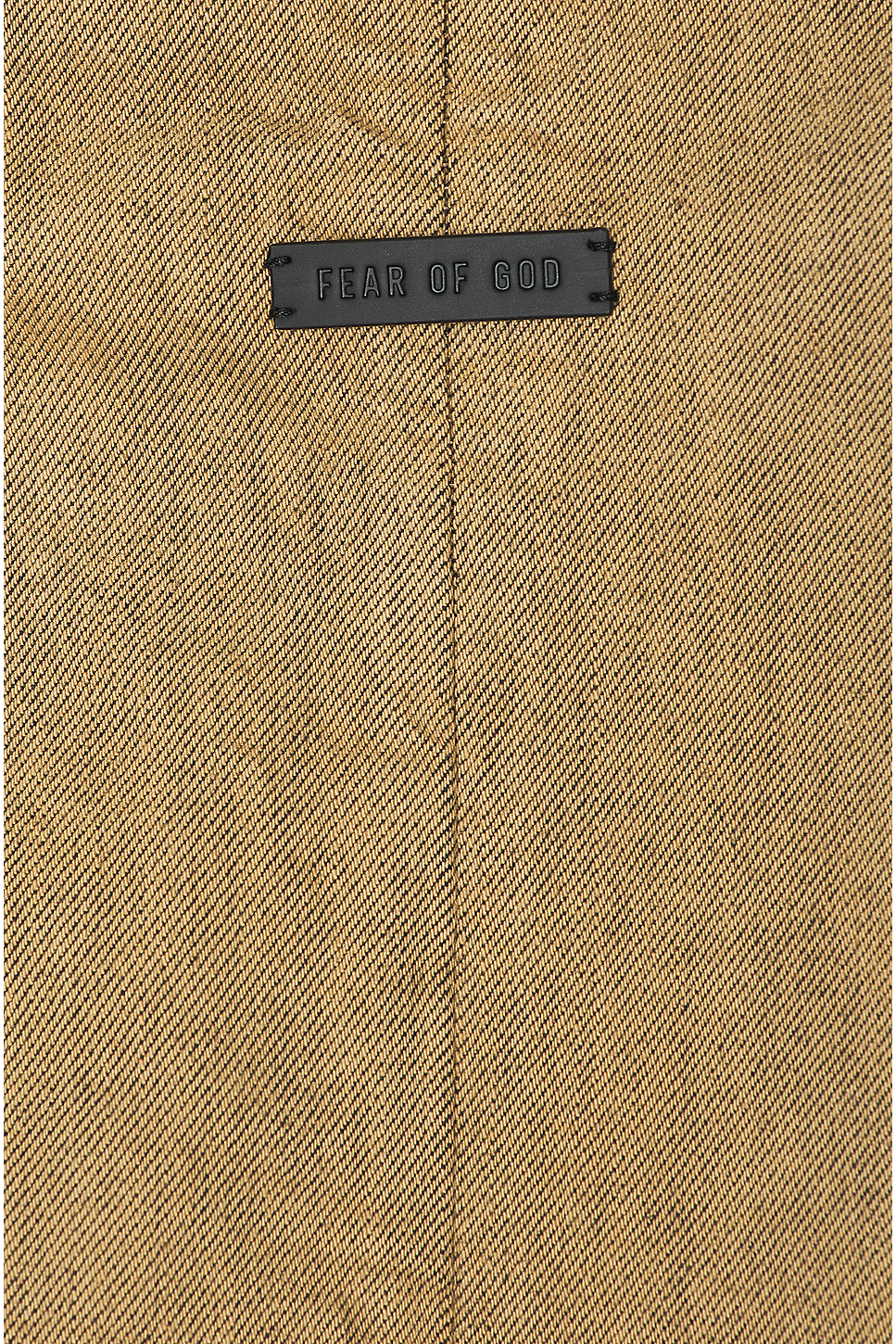 - Fear of God leather label at back collar
