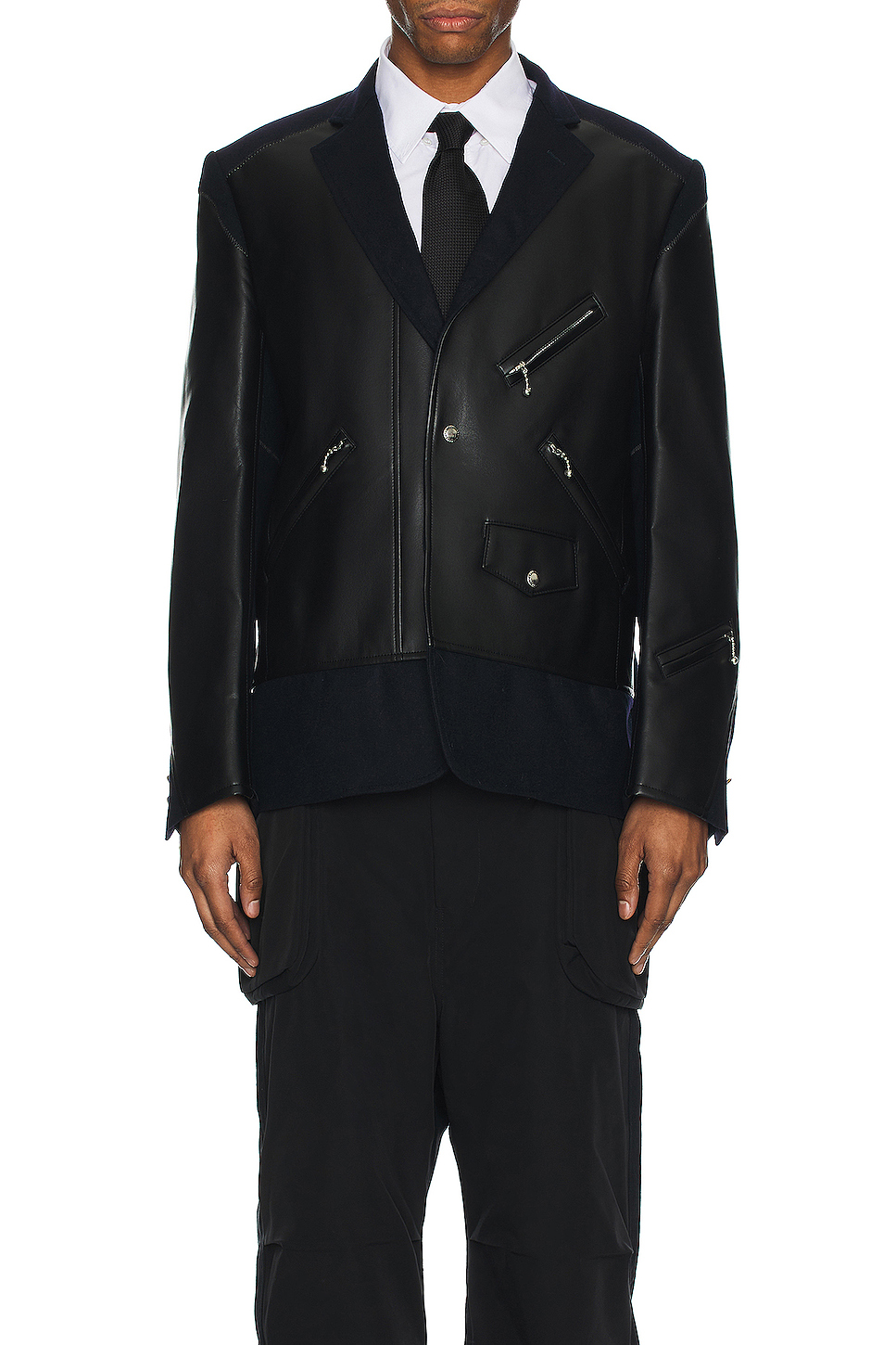 MANTH 黑色人造皮西装