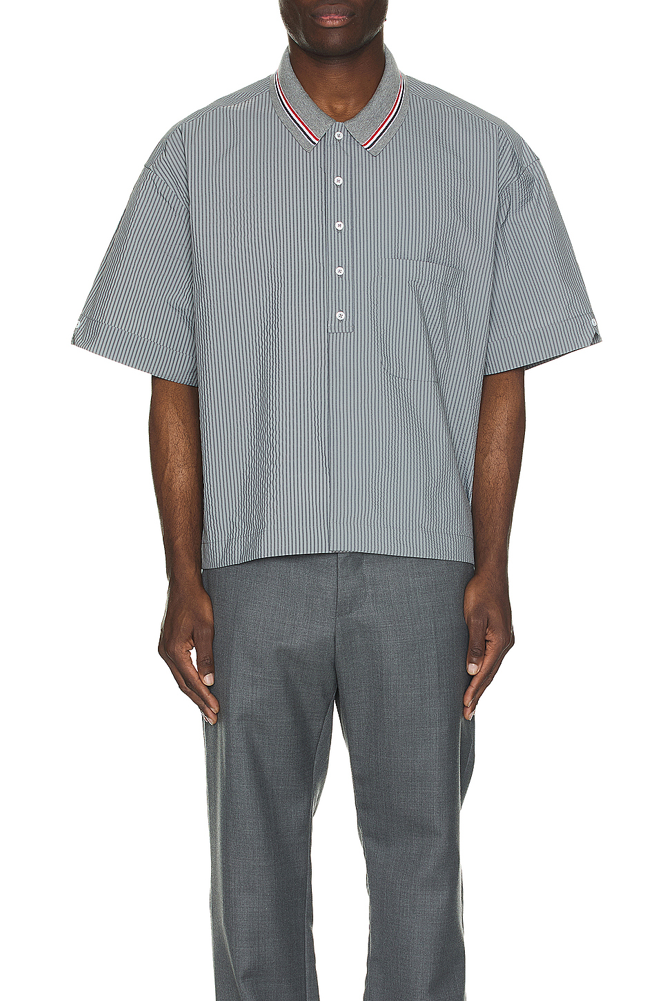 MANTH灰色泡泡纱衬衫