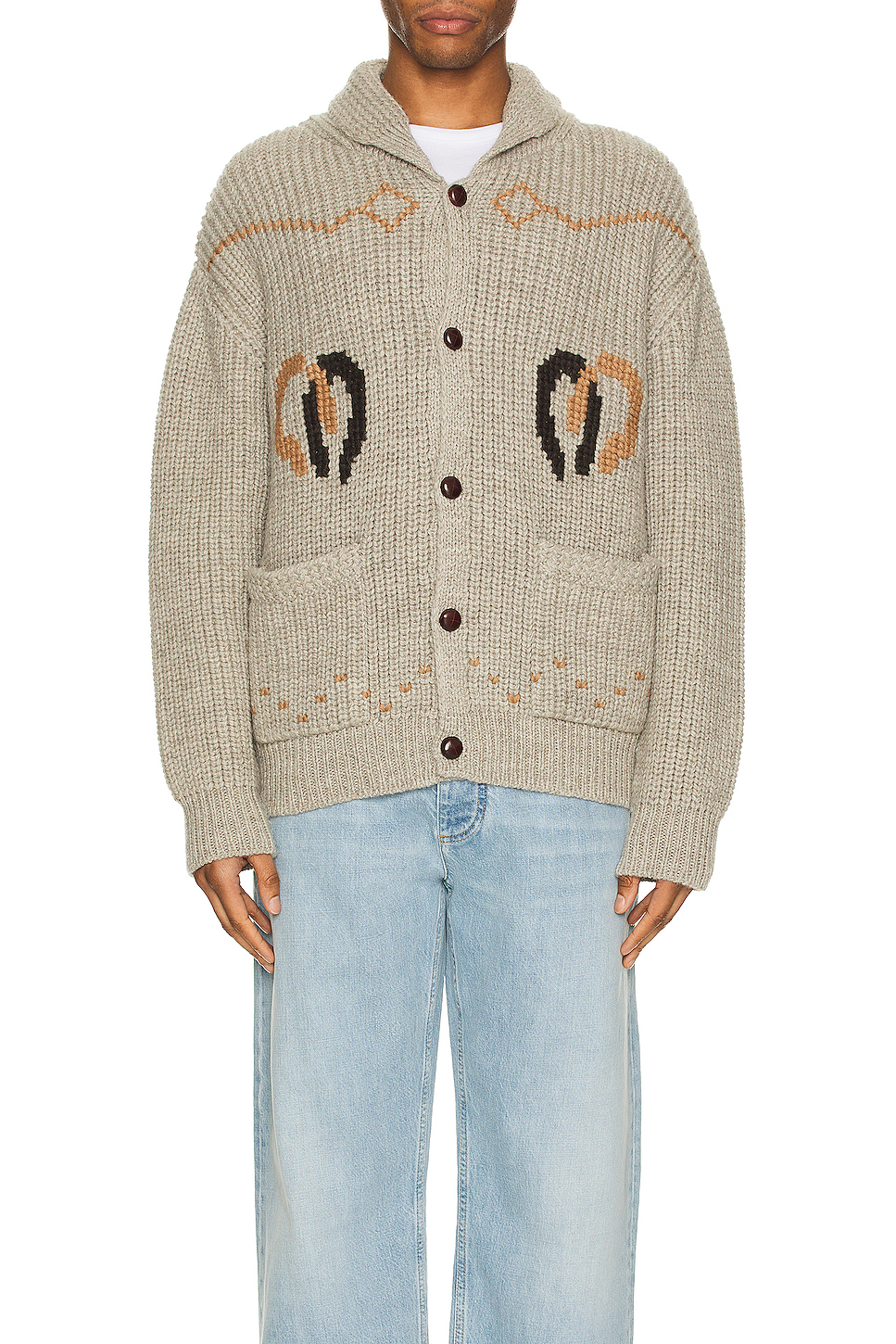 - Chunky knit fabric with horse and horse shoe graphic at back