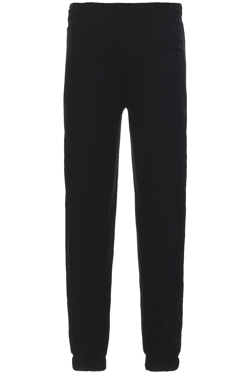 - Tonal embroidered flames at legs