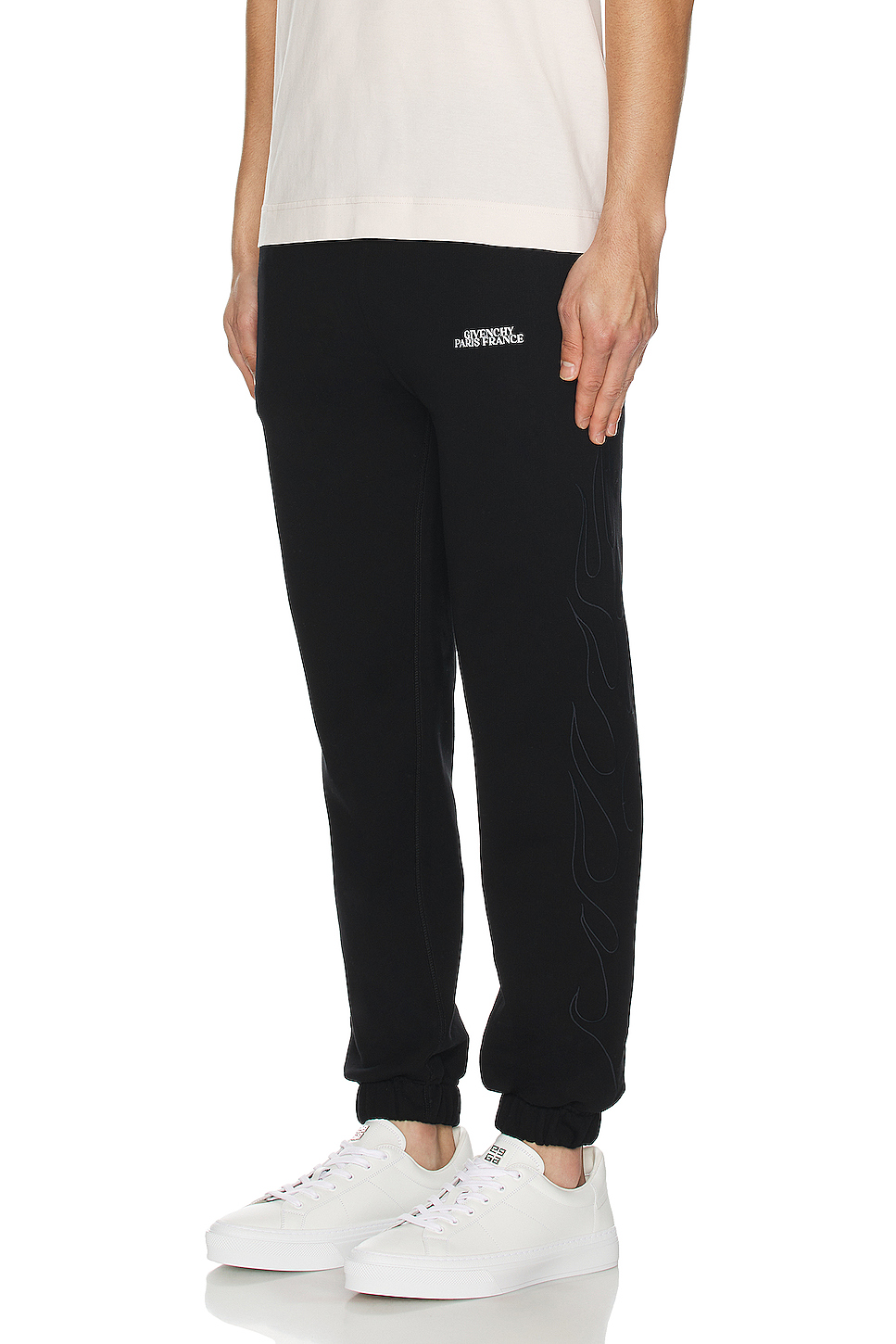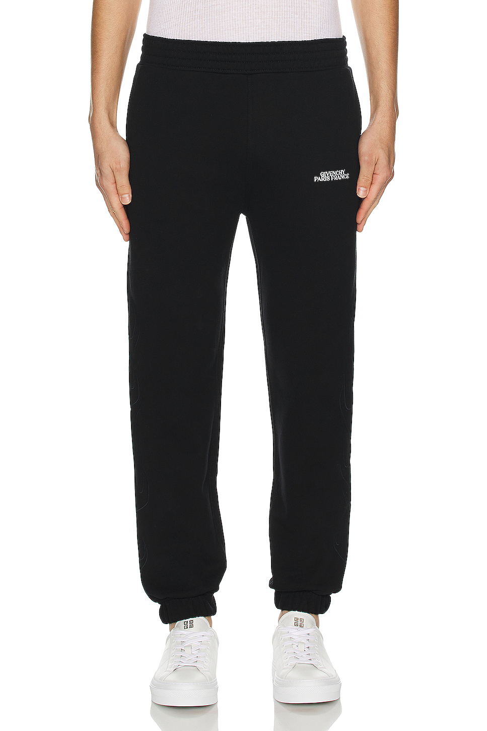 - Midweight fleece fabric with cinched cuffs and screenprinted Givenchy logo at left leg