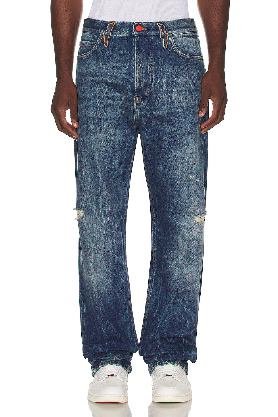 MANTH 蓝色闪电腰带牛仔裤