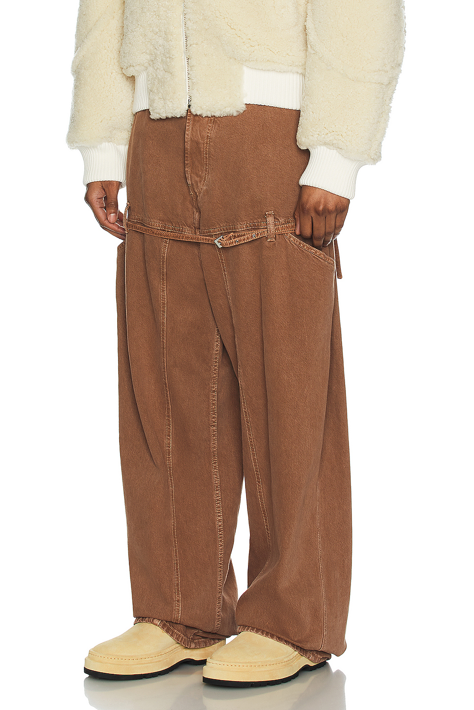 MANTH 棕色带绳牛仔裤