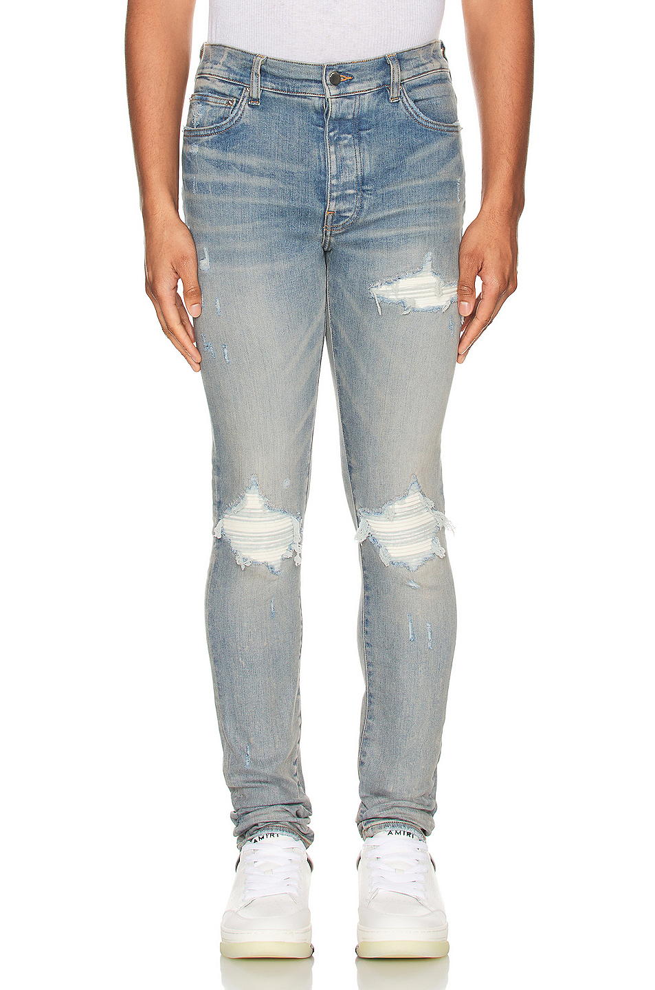 MANTH 蓝色漏膝牛仔裤