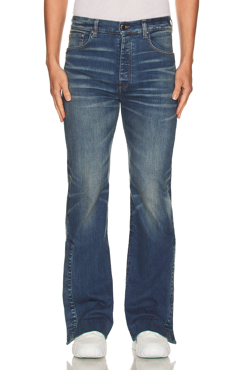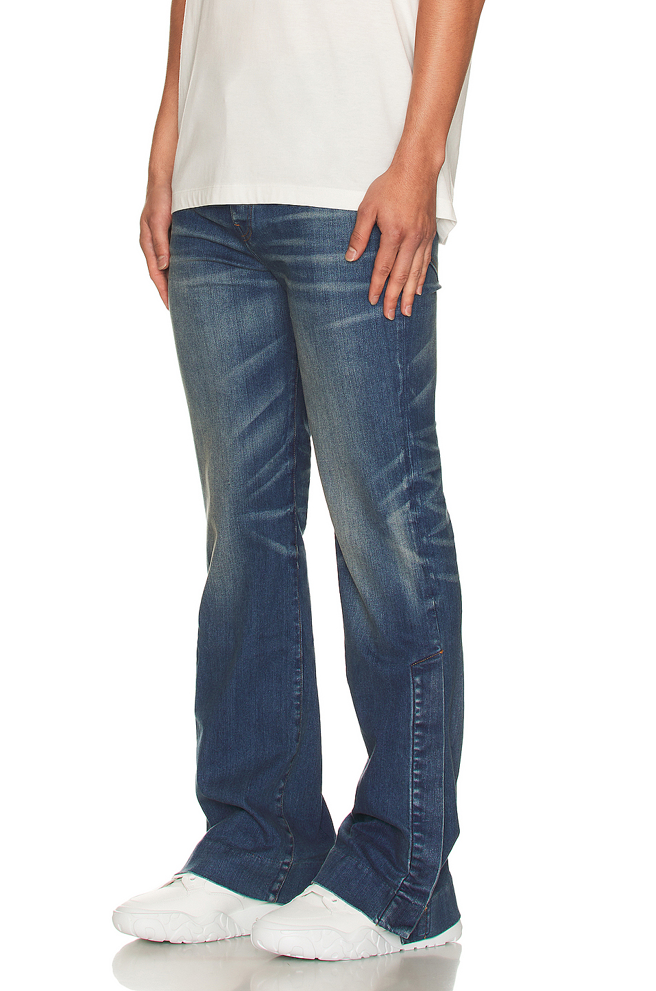 MANTH 蓝色猫褶牛仔裤