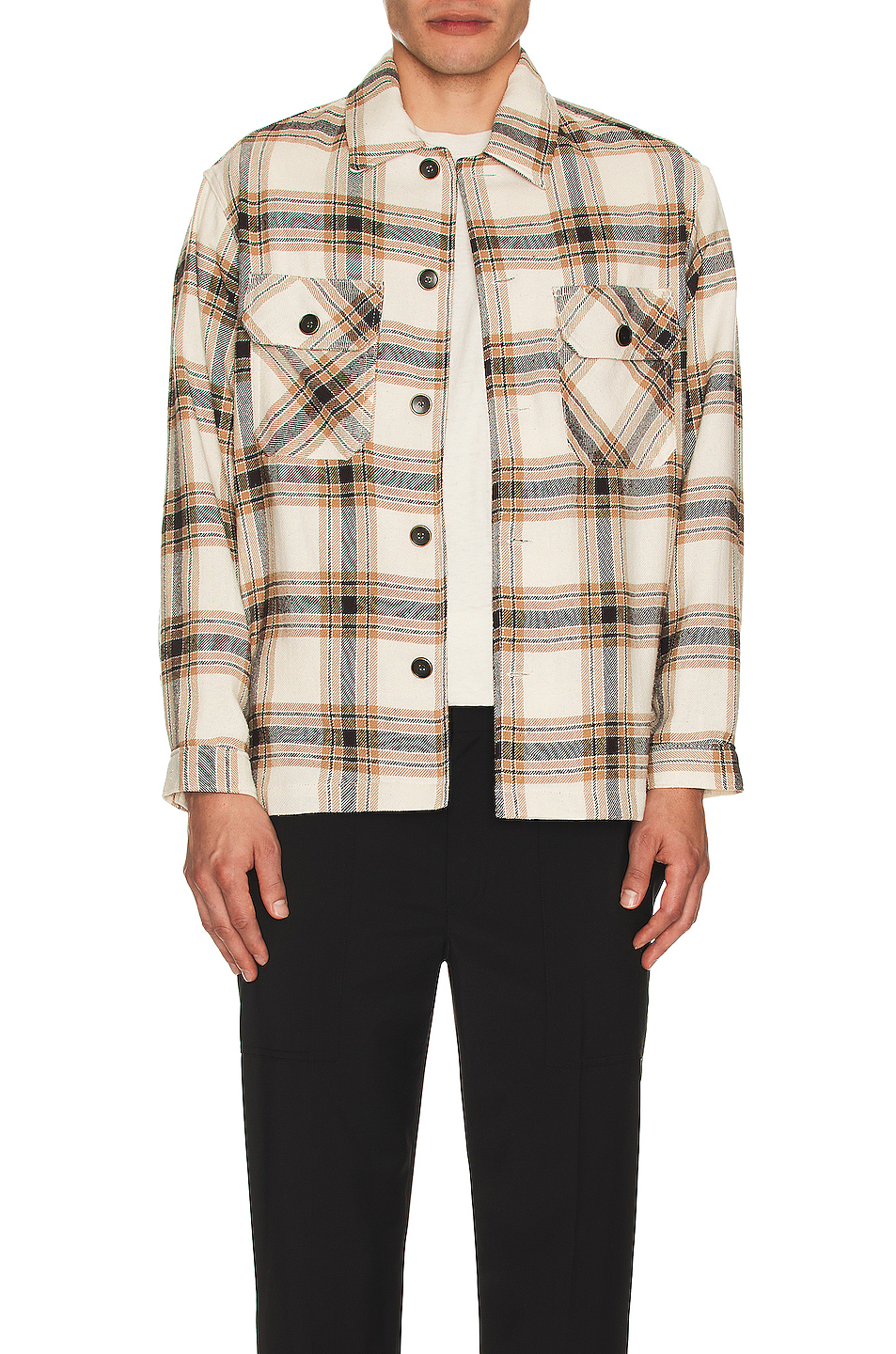 MANTH白色绿方格衬衫