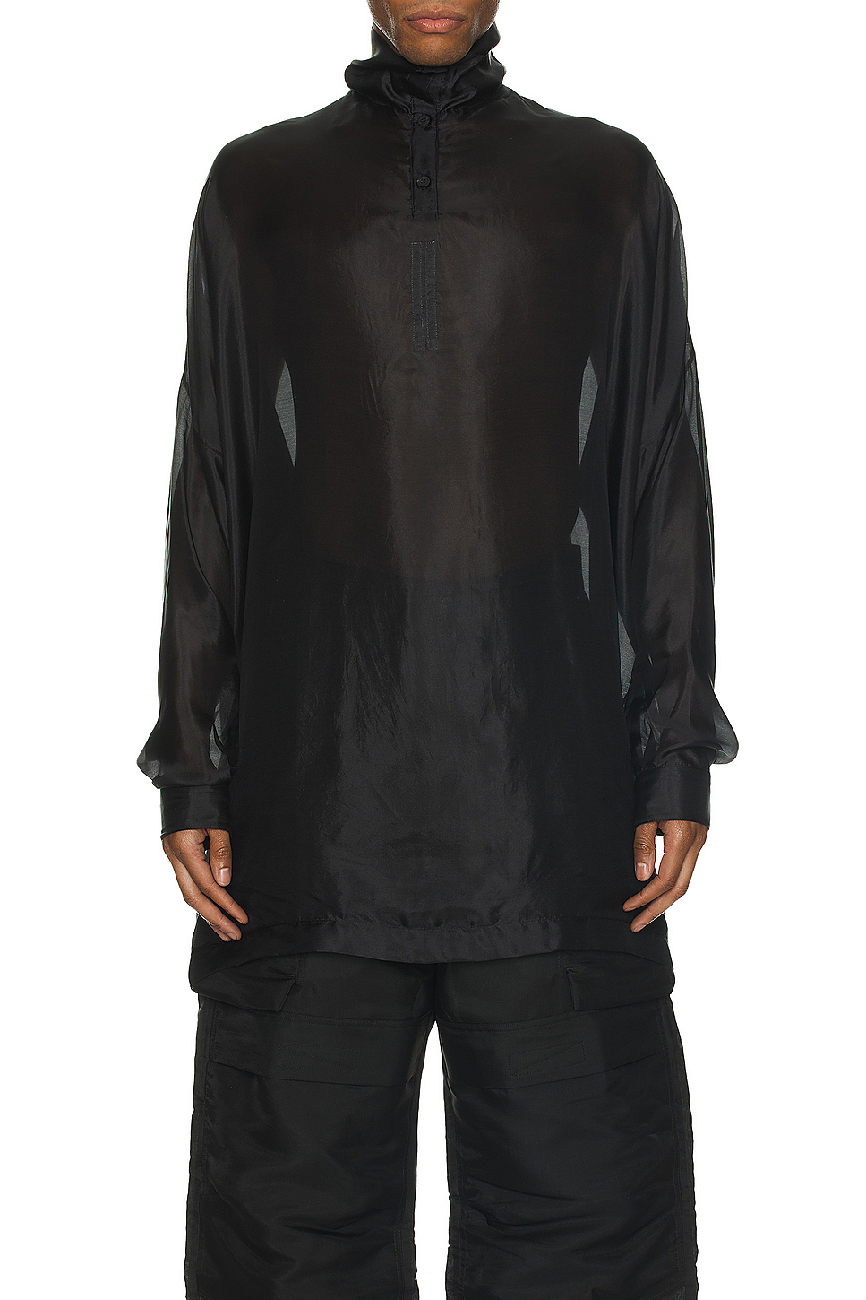 MANTH黑色丝绸高领T恤