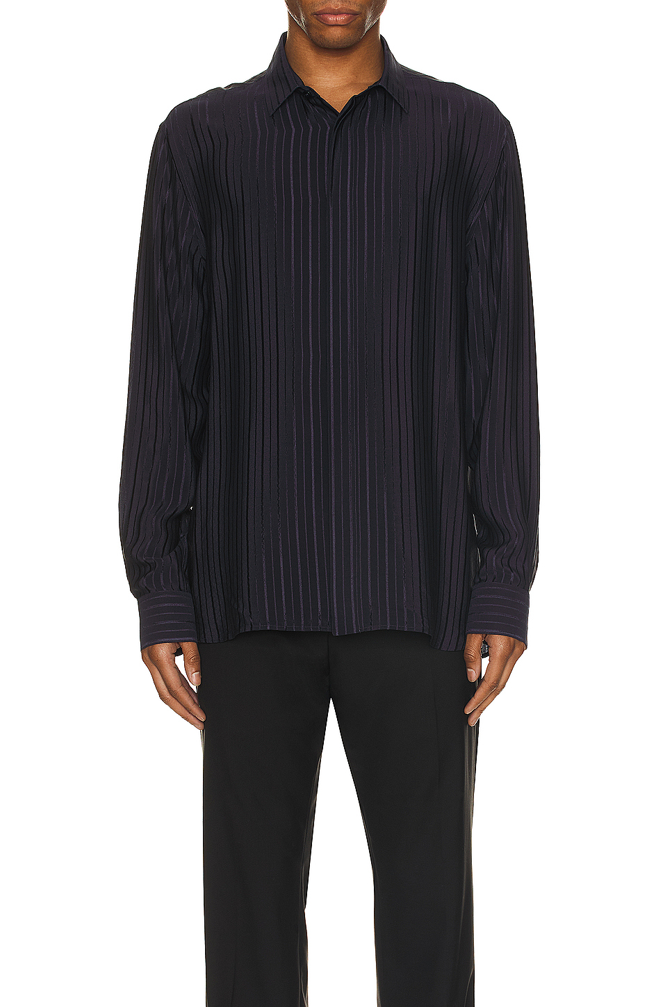 - Crepe de chine fabric with satin stripes