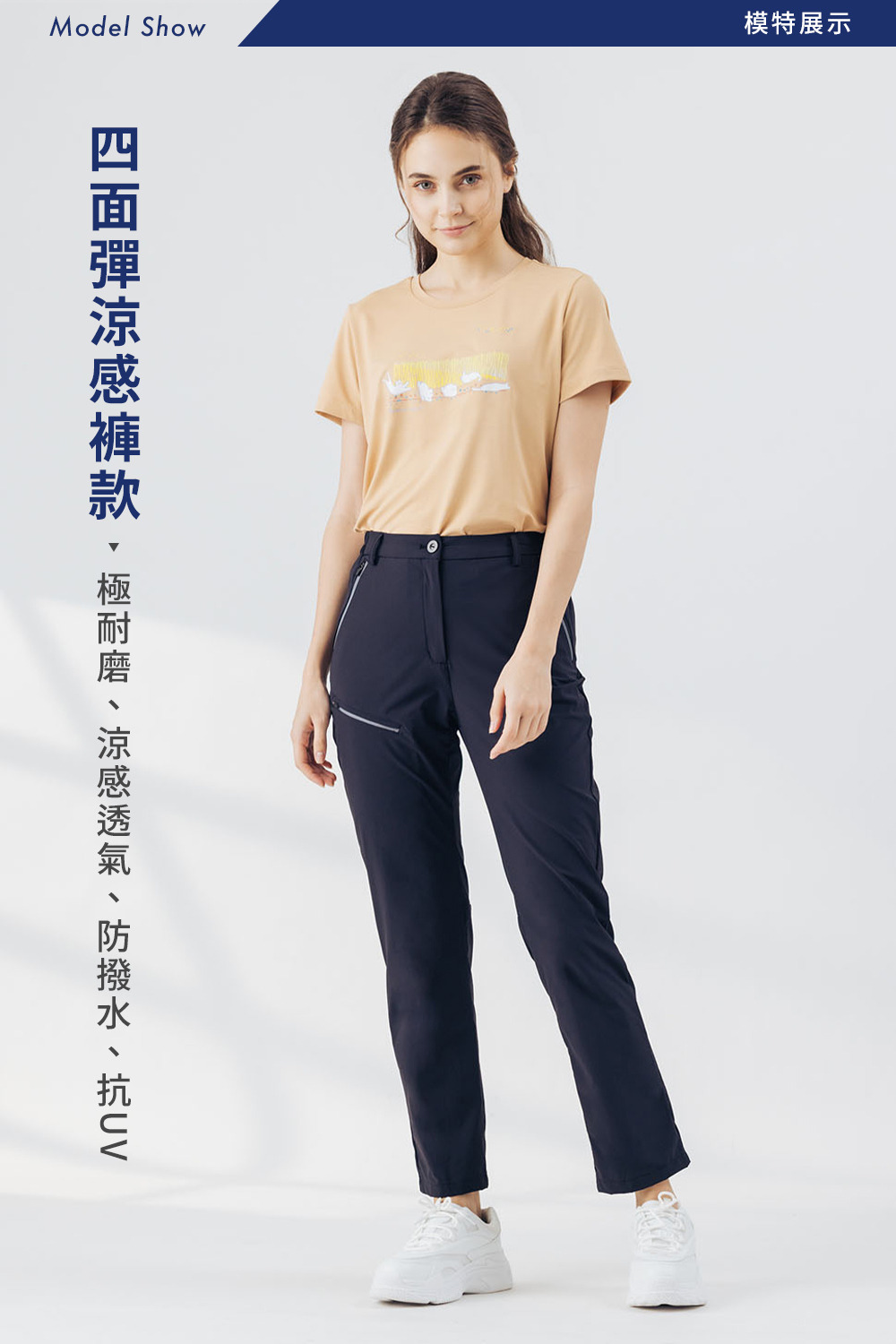 女款凉感四面弹耐磨拨水抗UV九分裤