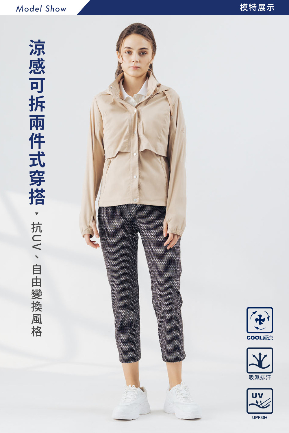 女款两件式凉感弹性吸排抗UV外套