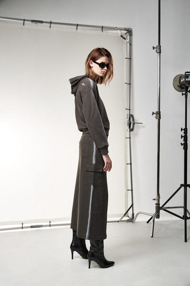 街头风深灰刷色棉料裙子